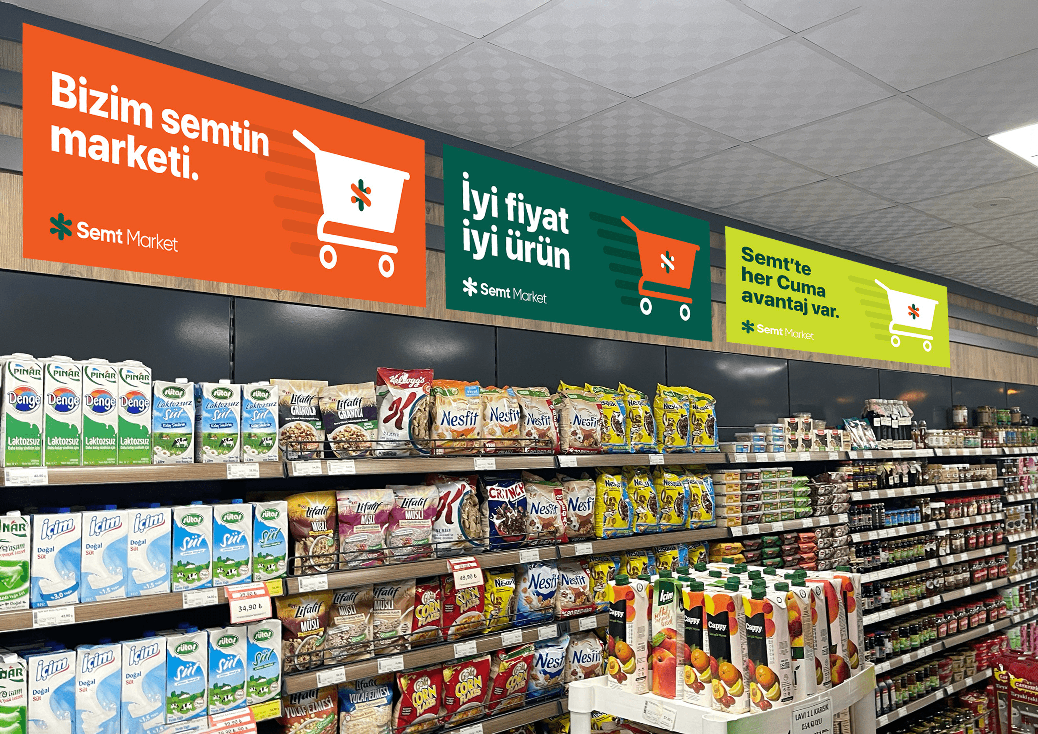 For Semt, the transformation went far beyond a logo refresh. We developed a cohesive identity framework that extends into store environments, promotional mechanics, pricing language, campaign visuals, and customer communications. Every element was designed to work as part of a unified system, ensuring consistency at shelf level, clarity in advertising, and recognisability across touchpoints. The result is a supermarket brand equipped not just with a new look, but with the strategic foundation to support sustained growth and ongoing marketing activity.
